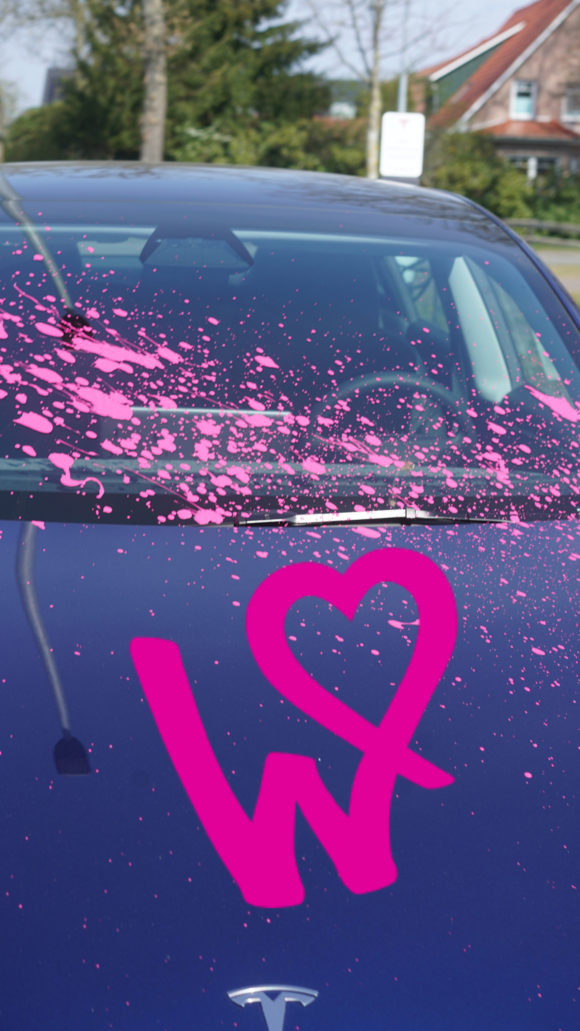 Wir handeln solidarisch mit ihnen – auch weil Europa von den totalitären Entwicklungen nicht unberührt bleibt. Es gab an sehr vielen Orten schon Proteste, zum Beispiel haben gestern, am 11.04.25, die Tesla Filialen in Oldenburg und München sowohl Denkzettel als auch Farbe abbekommen.