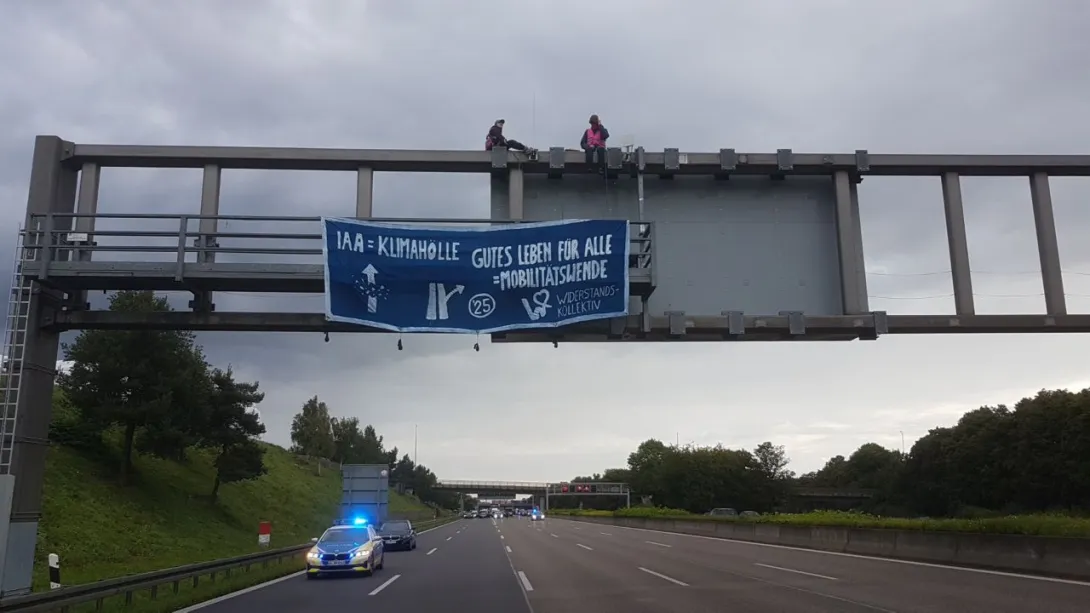 Das Widerstands-Kollektiv war bereits am Dienstag Morgen zum Auftakt der IAA mit einer Straßenblockade gegen die IAA aufgefallen. Dabei war der mittlere Ring direkt vor einem Mercedes-AMG-Showroom blockiert worden. [3]