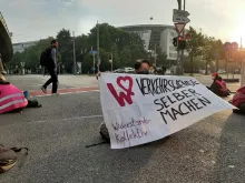 Am Donnerstag morgen haben Unterstützer*innen des Widerstands-Kollektivs erneut mit einer Straßenblockade den Weg zur IAA blockiert.